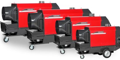 Heaters sit outside the marquee and run on either gas or kerosene (in-direct heaters). The warm air is blown into the structure via flexible ducts, and diffusers, which are positioned on the floor or discreetly on an elevated platform, are contolled by a thermostat that is located inside the marquee. Thus they can operate in a similar fashion to a central heating system, switching on and off as set.
