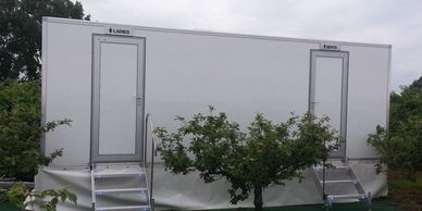 Trailer units can be located inside a marquee - a very popular option for the winter months so guests do not have to brave the elements. Usually steps will lead up into a unit or the marquee flooring can be raised to meet the level of the unit. Units can vary in the combination of ladies and gents - which can include urinals - and we would advise on this based on the number of guests.,